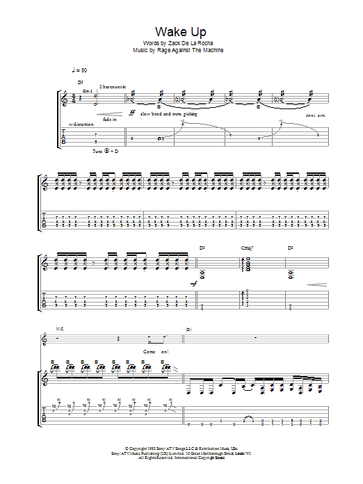 Download or print Rage Against The Machine Wake Up sheet music, chords and digital score arranged for Guitar Tab. This Alternative score includes 12 page(s).
