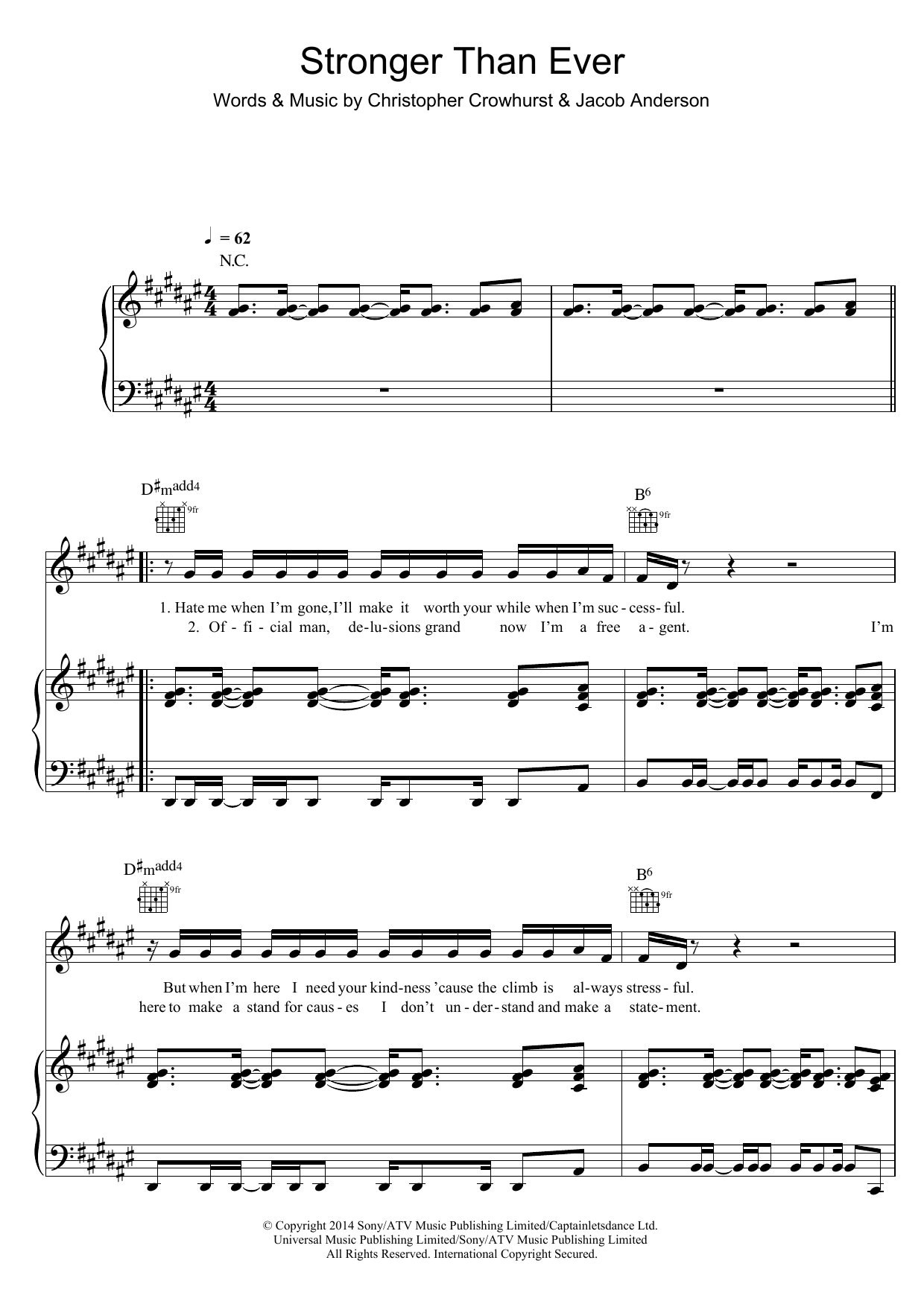 Download or print Raleigh Ritchie Stronger Than Ever sheet music, chords and digital score arranged for Piano, Vocal & Guitar Chords. This Hip-Hop score includes 6 page(s).