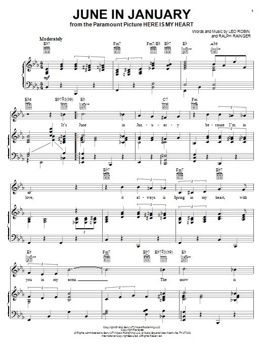 Download or print Ralph Rainger June In January sheet music, chords and digital score arranged for Real Book – Melody & Chords – C Instruments. This Jazz score includes 1 page(s).