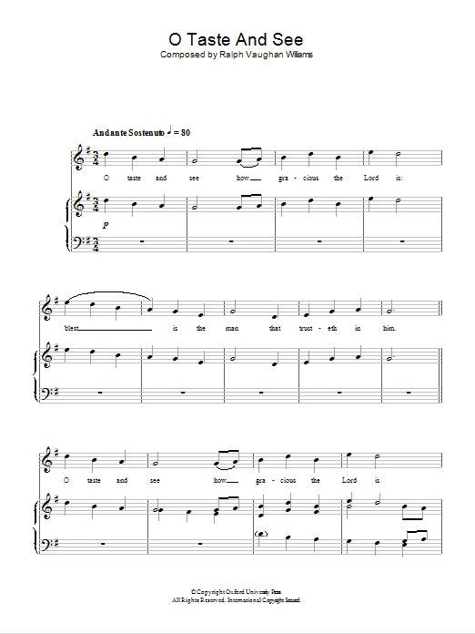 Download or print Ralph Vaughan Williams O Taste And See sheet music, chords and digital score arranged for Easy Piano. This Classical score includes 2 page(s).