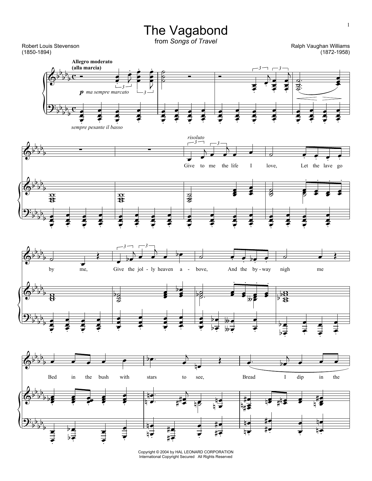 Download or print Ralph Vaughn Williams The Vagabond sheet music, chords and digital score arranged for Piano & Vocal. This Classical score includes 6 page(s).