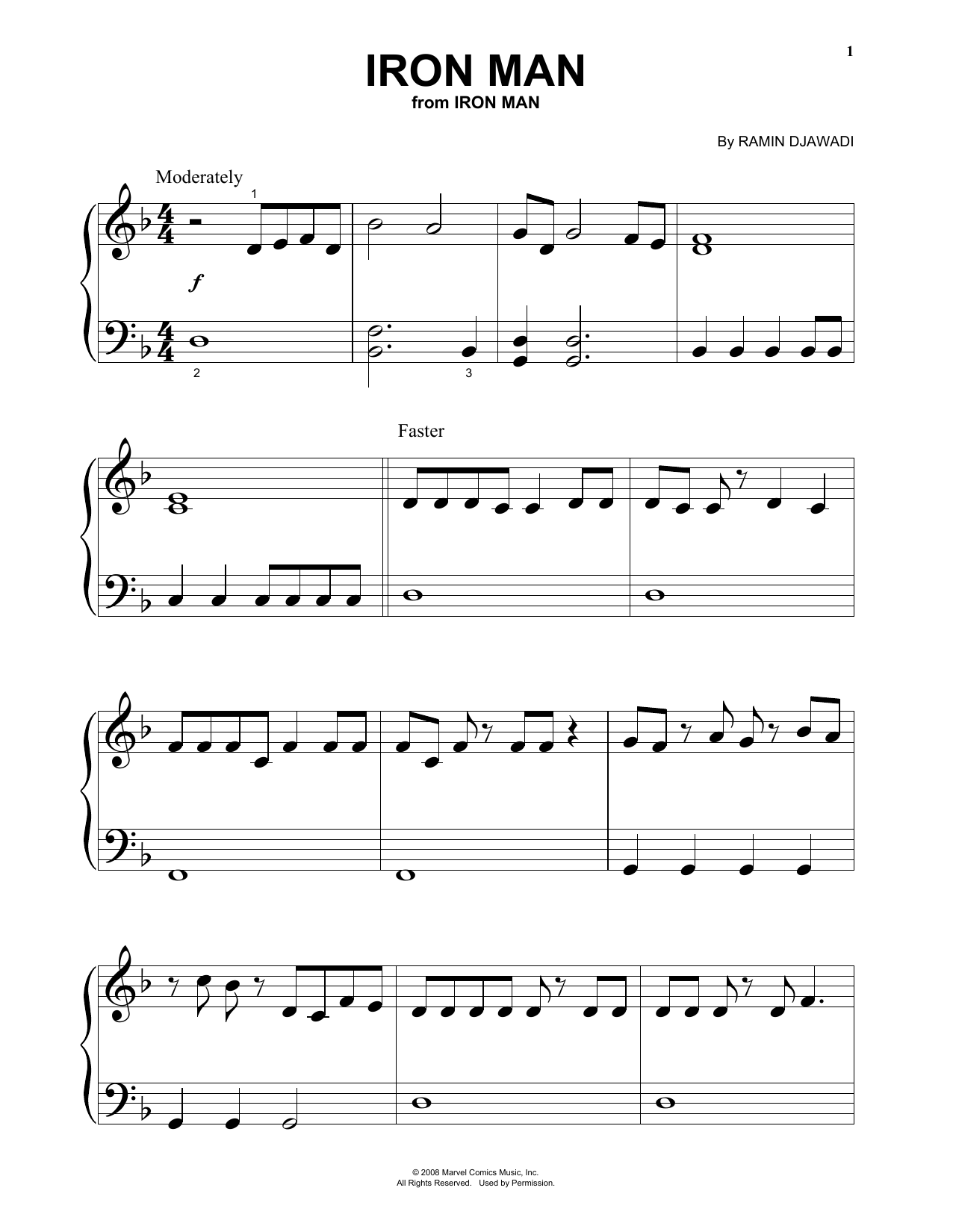 Download or print Ramin Djawadi Iron Man (from Iron Man) sheet music, chords and digital score arranged for Beginning Piano Solo. This Children score includes 3 page(s).
