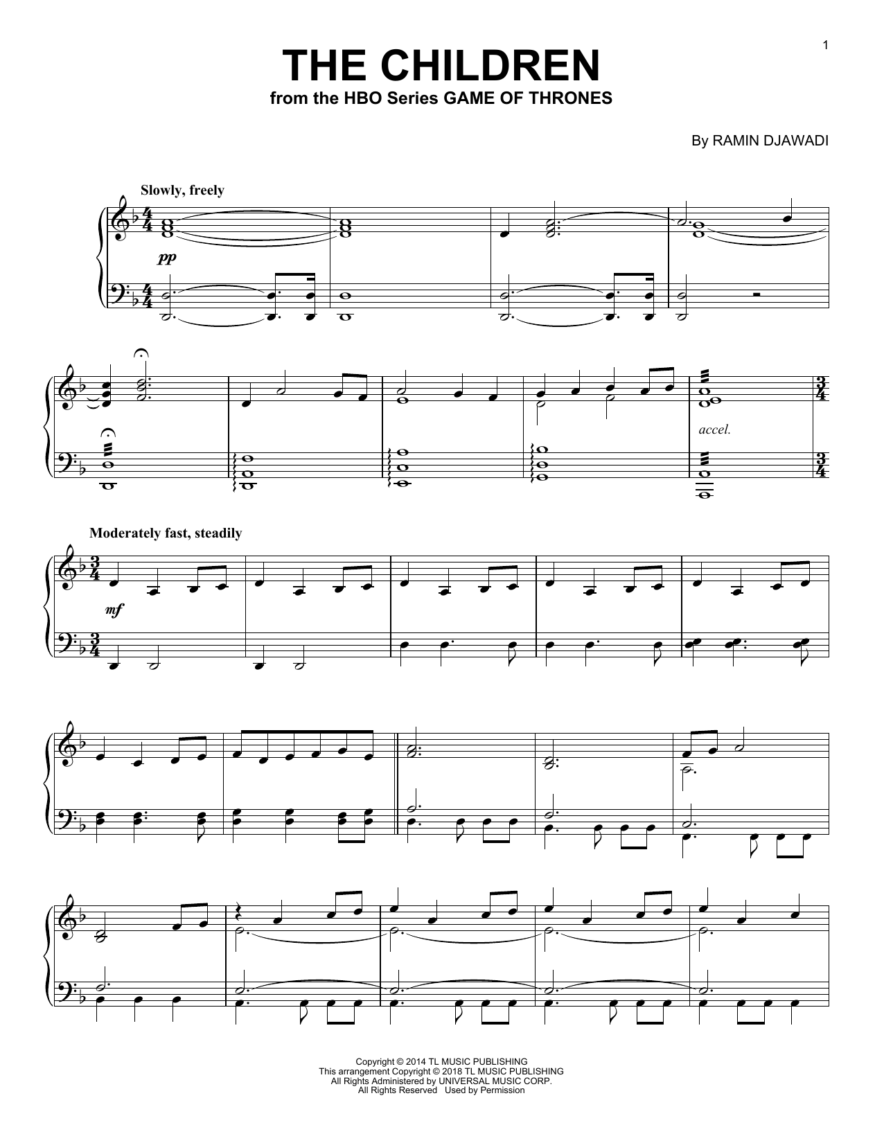 Download or print Ramin Djawadi The Children (from Game of Thrones) sheet music, chords and digital score arranged for Piano Solo. This Pop score includes 4 page(s).