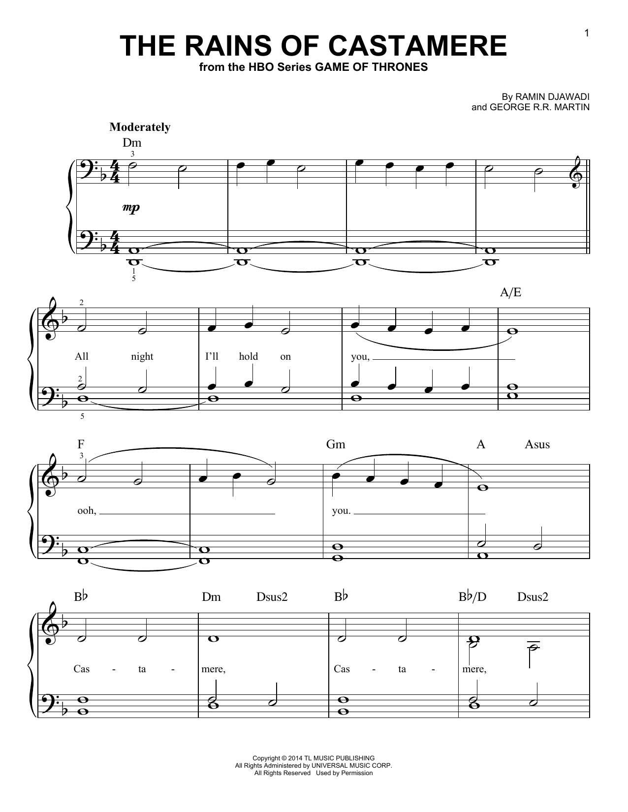 Download or print Ramin Djawadi The Rains Of Castamere (from Game of Thrones) sheet music, chords and digital score arranged for Solo Guitar. This Film/TV score includes 3 page(s).
