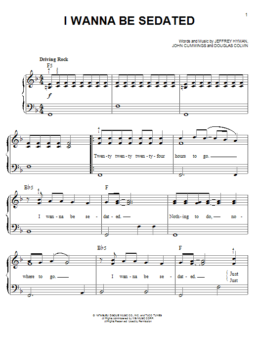 Download or print Ramones I Wanna Be Sedated sheet music, chords and digital score arranged for Drum Chart. This Pop score includes 3 page(s).
