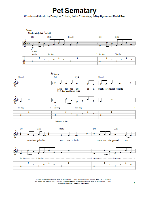 Download or print Ramones Pet Sematary sheet music, chords and digital score arranged for Piano, Vocal & Guitar Chords (Right-Hand Melody). This Pop score includes 4 page(s).