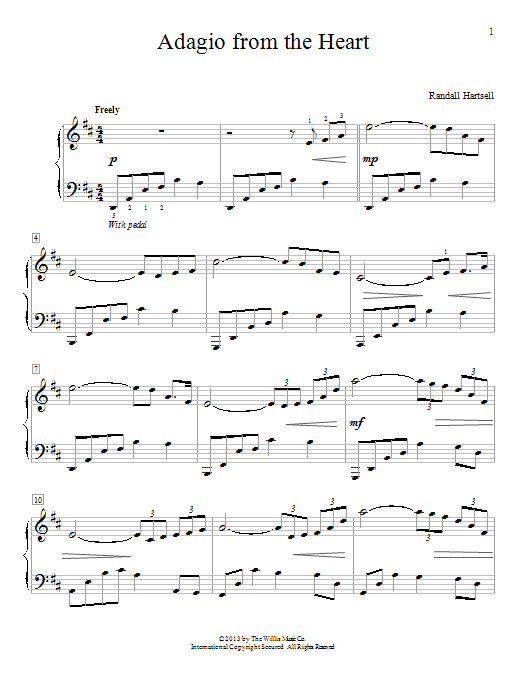 Download or print Randall Hartsell Adagio From The Heart sheet music, chords and digital score arranged for Piano Solo. This Wedding score includes 3 page(s).