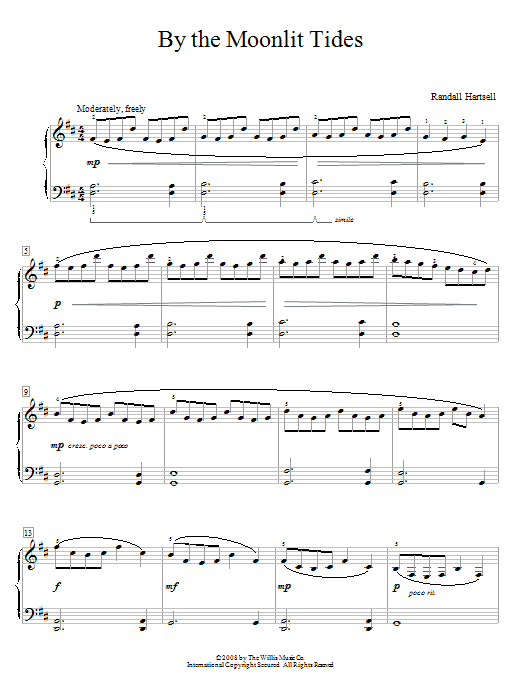 Download or print Randall Hartsell By The Moonlit Tides sheet music, chords and digital score arranged for Educational Piano. This New Age score includes 2 page(s).