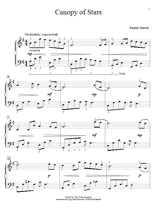 Download or print Randall Hartsell Canopy Of Stars sheet music, chords and digital score arranged for Educational Piano. This New Age score includes 2 page(s).