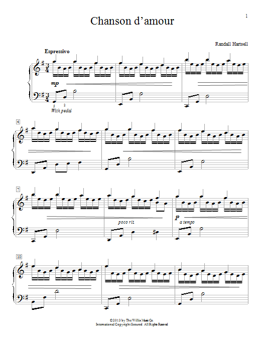 Download or print Randall Hartsell Chanson D'Amour sheet music, chords and digital score arranged for Piano Solo. This Wedding score includes 3 page(s).