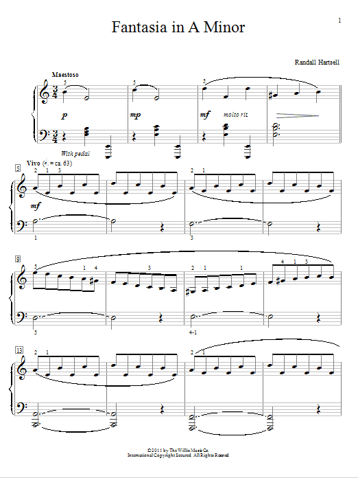 Download or print Randall Hartsell Fantasia In A Minor sheet music, chords and digital score arranged for Educational Piano. This Classical score includes 6 page(s).