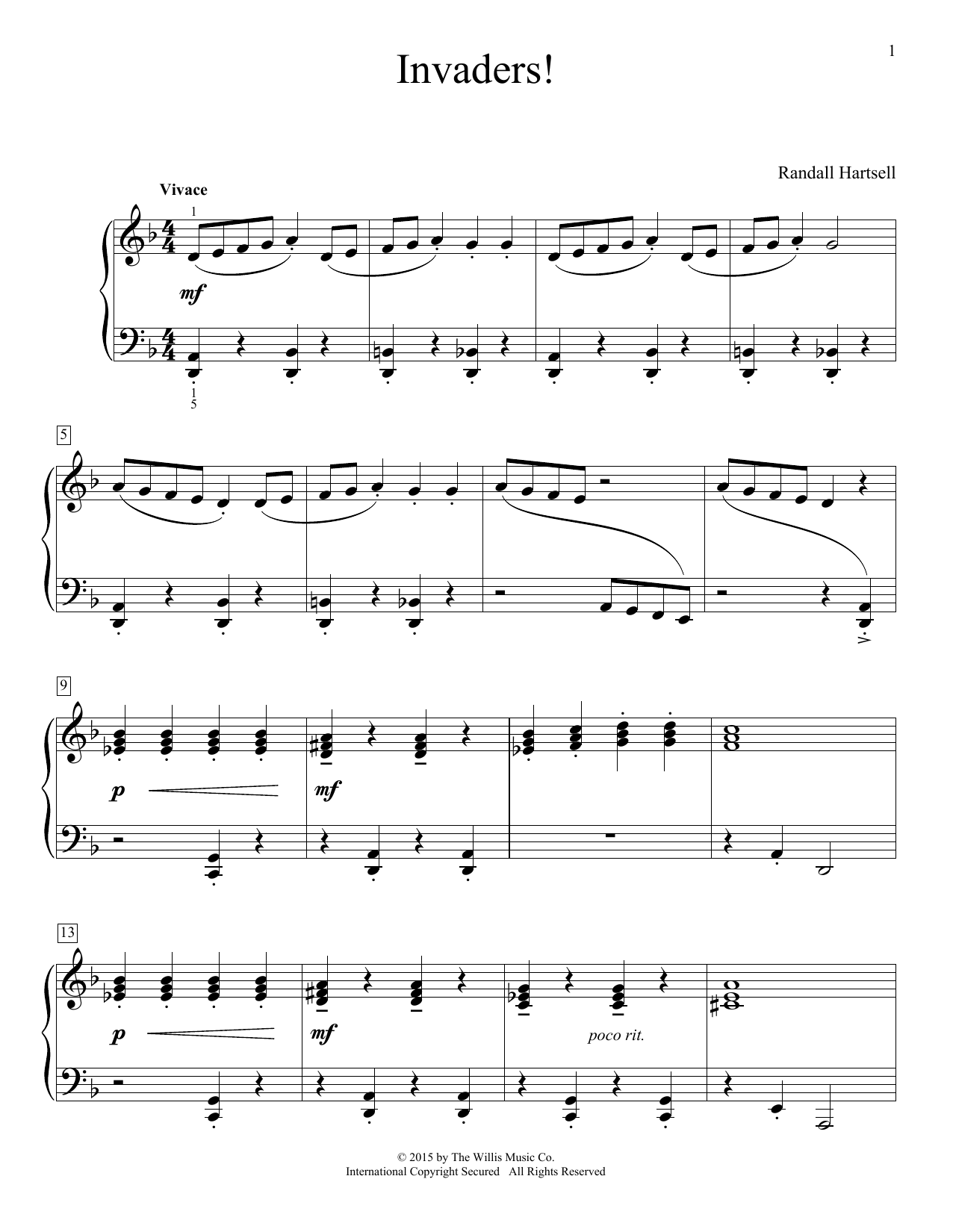 Download or print Randall Hartsell Invaders! sheet music, chords and digital score arranged for Educational Piano. This Children score includes 2 page(s).