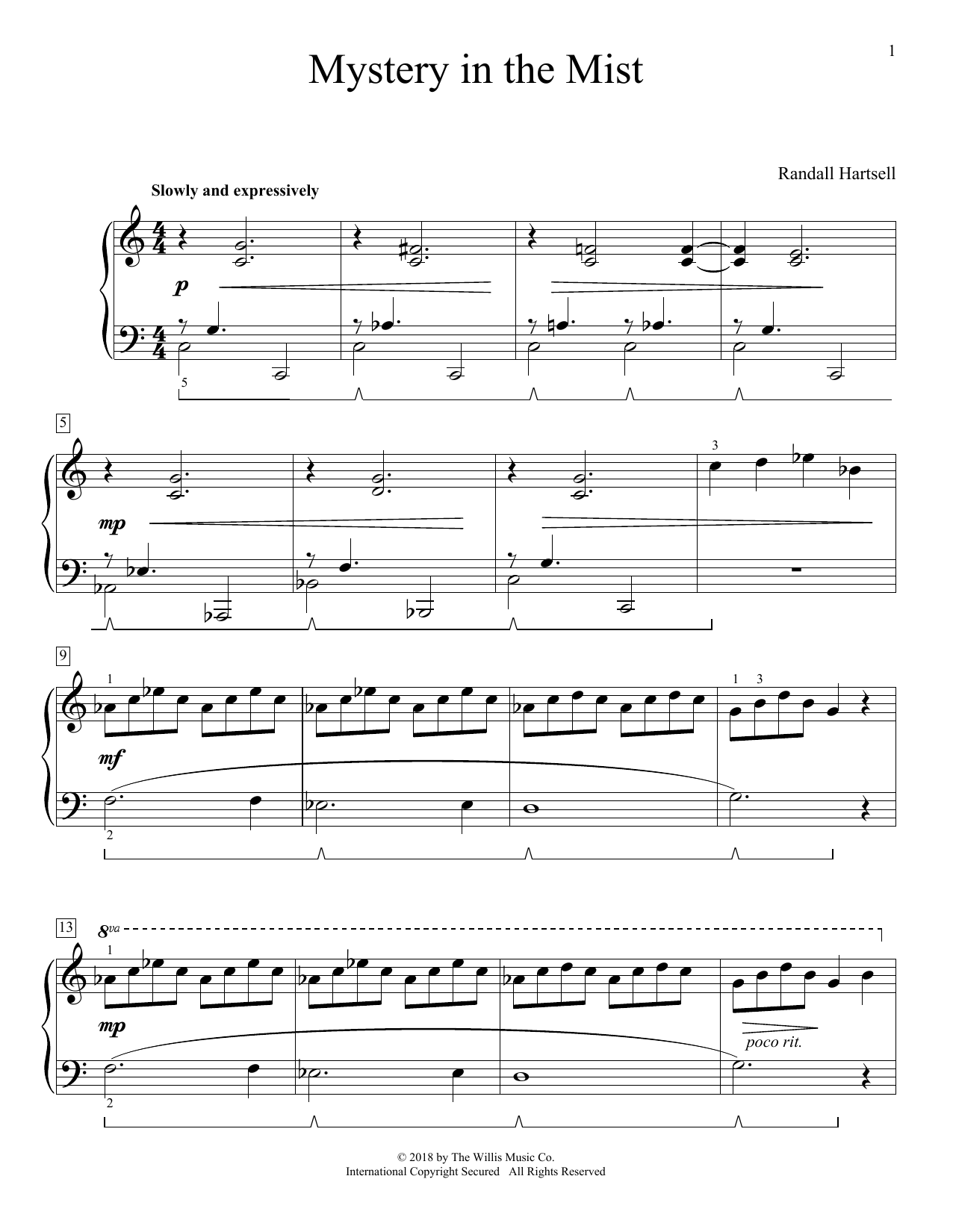 Download or print Randall Hartsell Mystery In The Mist sheet music, chords and digital score arranged for Educational Piano. This Children score includes 2 page(s).