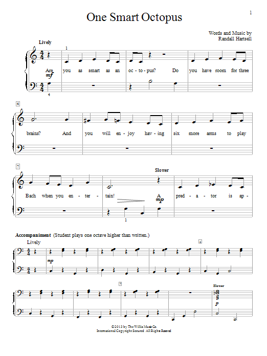 Download or print Randall Hartsell One Smart Octopus sheet music, chords and digital score arranged for Educational Piano. This Instructional score includes 2 page(s).