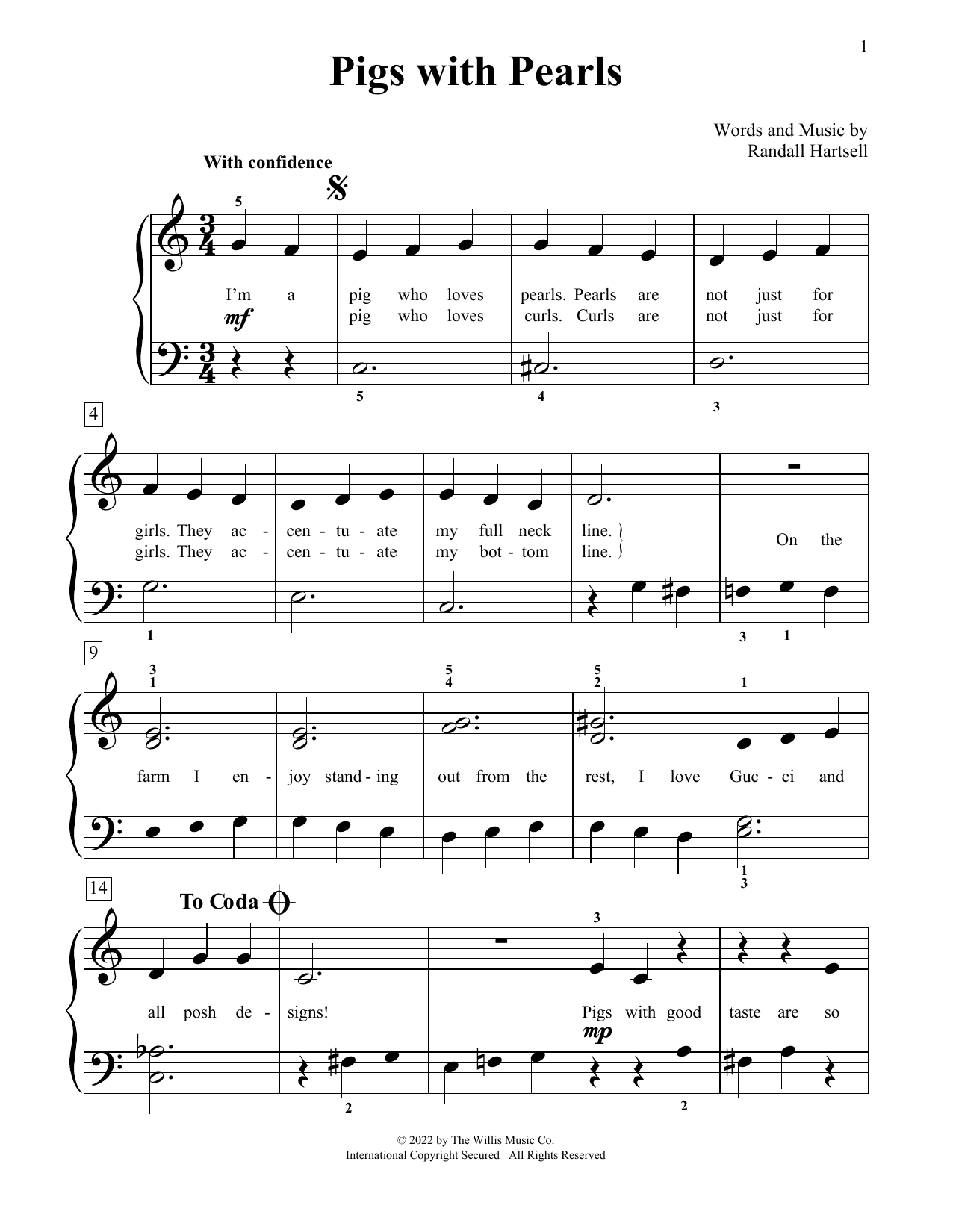 Download or print Randall Hartsell Pigs With Pearls sheet music, chords and digital score arranged for Educational Piano. This Instructional score includes 2 page(s).