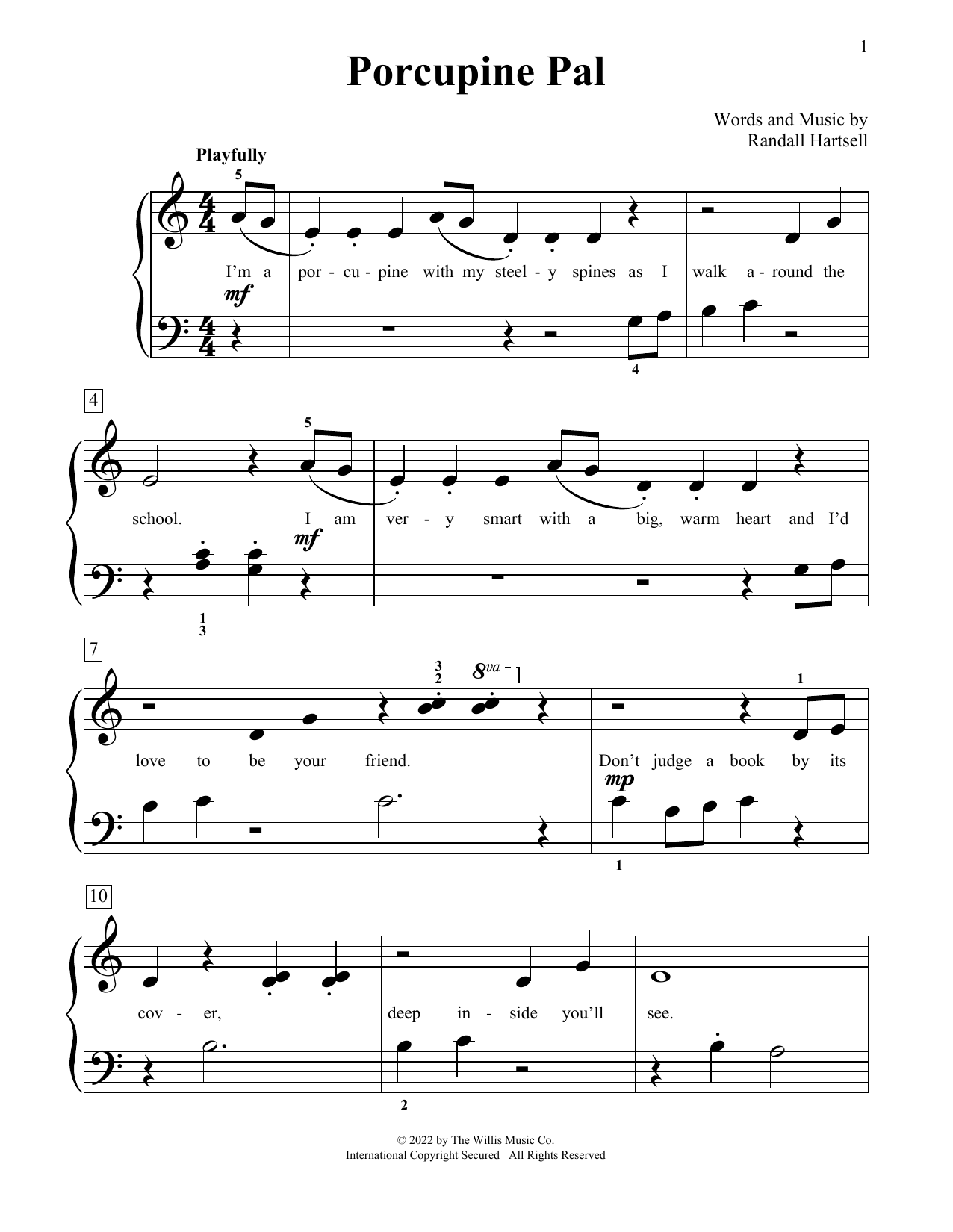 Download or print Randall Hartsell Porcupine Pal sheet music, chords and digital score arranged for Educational Piano. This Instructional score includes 2 page(s).