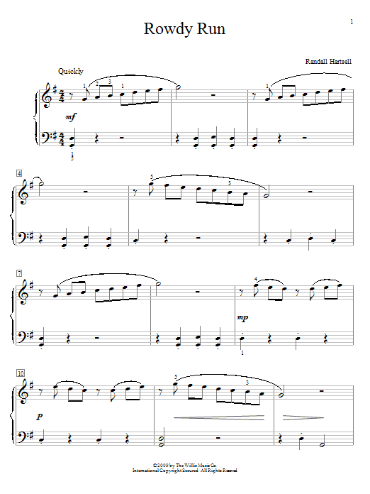 Download or print Randall Hartsell Rowdy Run sheet music, chords and digital score arranged for Educational Piano. This Classical score includes 3 page(s).