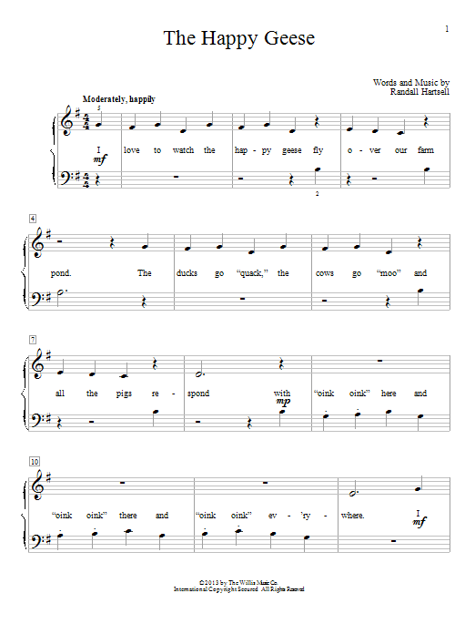 Download or print Randall Hartsell The Happy Geese sheet music, chords and digital score arranged for Educational Piano. This Pop score includes 2 page(s).