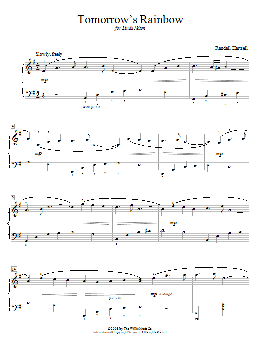 Download or print Randall Hartsell Tomorrow's Rainbow sheet music, chords and digital score arranged for Educational Piano. This New Age score includes 3 page(s).