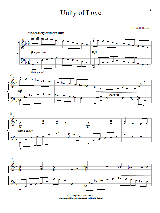 Download or print Randall Hartsell Unity Of Love sheet music, chords and digital score arranged for Piano Solo. This Wedding score includes 4 page(s).