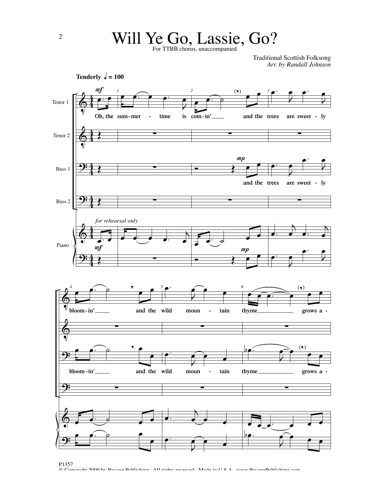 Download or print Randall Johnson Will Ye Go, Lassie, Go? sheet music, chords and digital score arranged for TTBB Choir. This Concert score includes 11 page(s).