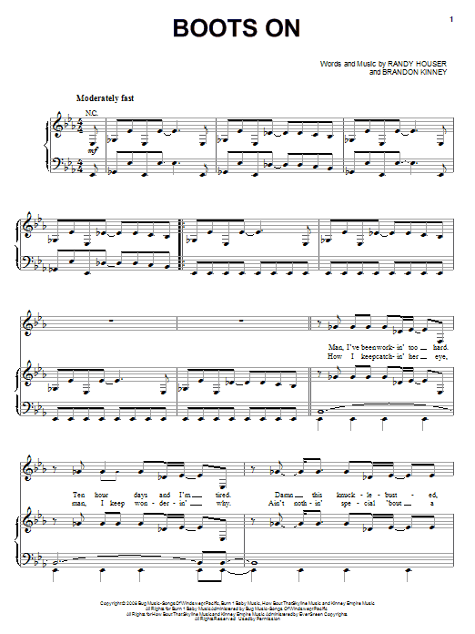 Download or print Randy Houser Boots On sheet music, chords and digital score arranged for Piano, Vocal & Guitar Chords (Right-Hand Melody). This Country score includes 5 page(s).
