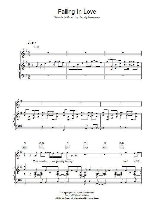 Download or print Randy Newman Falling In Love sheet music, chords and digital score arranged for Piano, Vocal & Guitar Chords. This Pop score includes 6 page(s).