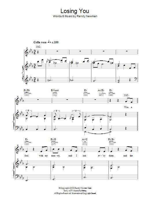Download or print Randy Newman Losing You sheet music, chords and digital score arranged for Piano, Vocal & Guitar Chords. This Pop score includes 5 page(s).