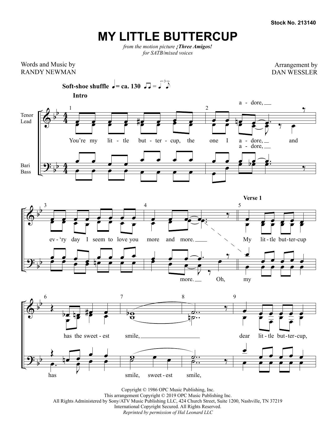 Download or print Randy Newman My Little Buttercup (arr. Dan Wessler) sheet music, chords and digital score arranged for SSA Choir. This Barbershop score includes 7 page(s).