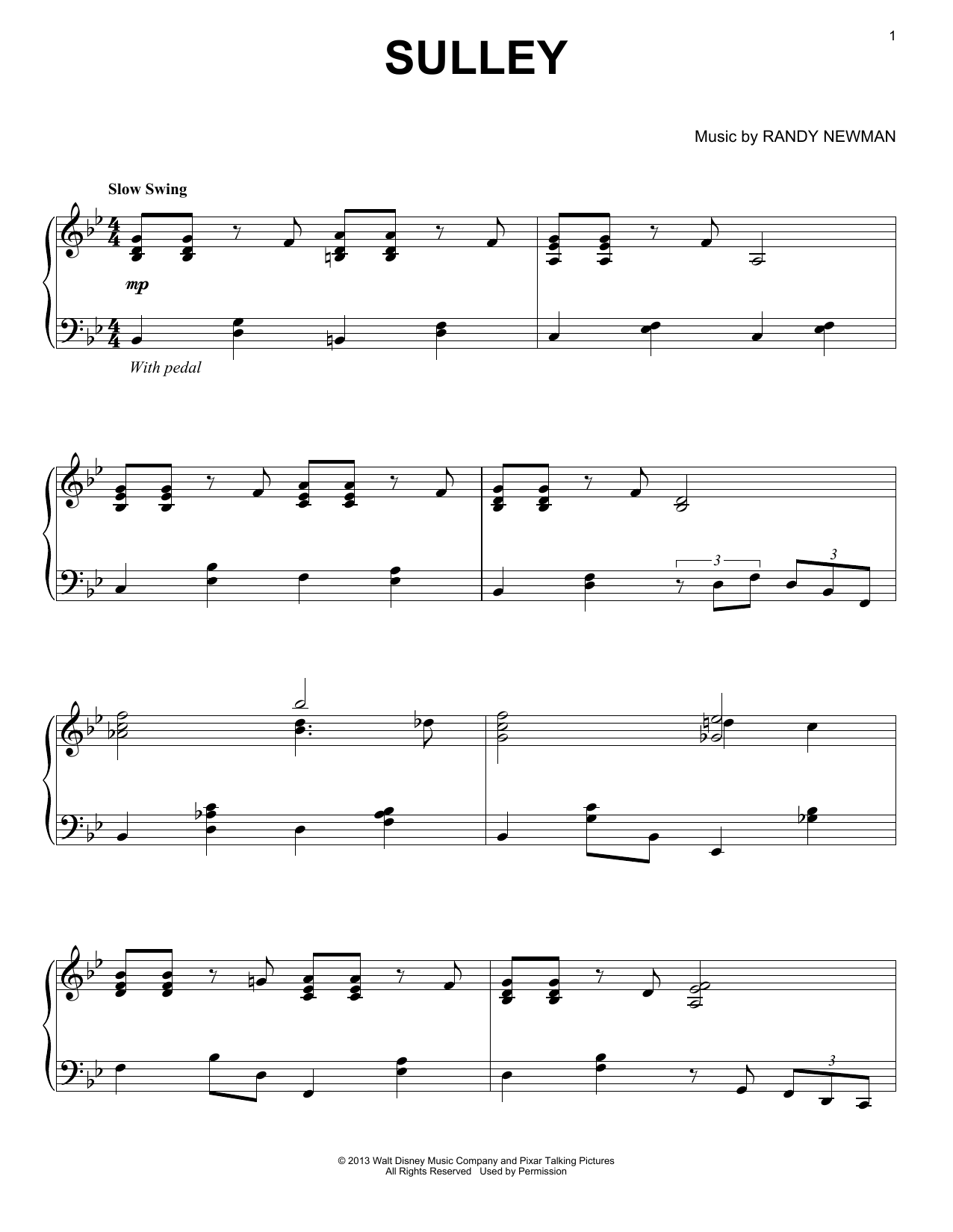 Download or print Randy Newman Sulley sheet music, chords and digital score arranged for Piano Solo. This Children score includes 2 page(s).