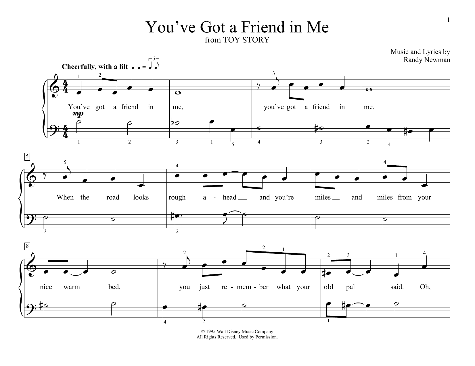Download or print Randy Newman You've Got A Friend In Me (from Toy Story) (arr. Christopher Hussey) sheet music, chords and digital score arranged for Educational Piano. This Disney score includes 2 page(s).