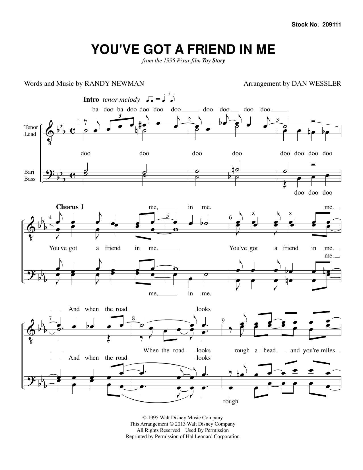 Download or print Randy Newman You've Got A Friend In Me (from Toy Story) (arr. Dan Wessler) sheet music, chords and digital score arranged for TTBB Choir. This Disney score includes 5 page(s).