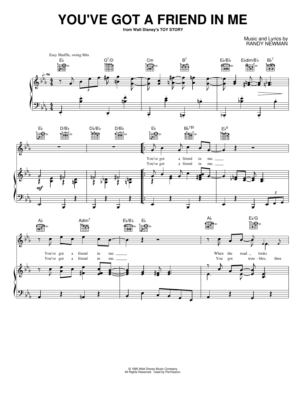 Download or print Randy Newman You've Got A Friend In Me sheet music, chords and digital score arranged for Piano, Vocal & Guitar Chords (Right-Hand Melody). This Pop score includes 4 page(s).