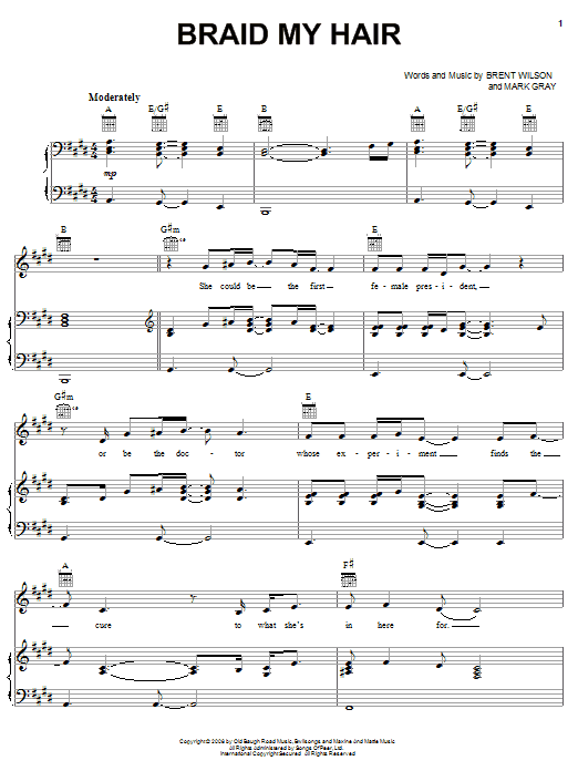 Download or print Randy Owen Braid My Hair sheet music, chords and digital score arranged for Piano, Vocal & Guitar Chords (Right-Hand Melody). This Country score includes 8 page(s).