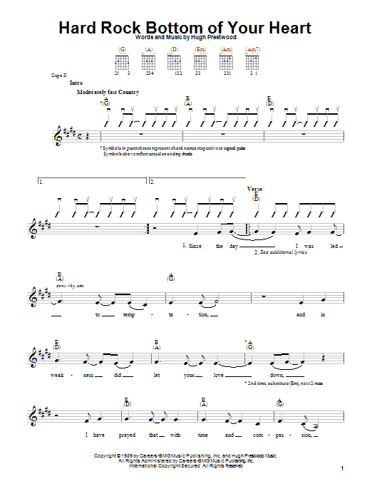 Download or print Randy Travis Hard Rock Bottom Of Your Heart sheet music, chords and digital score arranged for Easy Guitar Tab. This Country score includes 3 page(s).