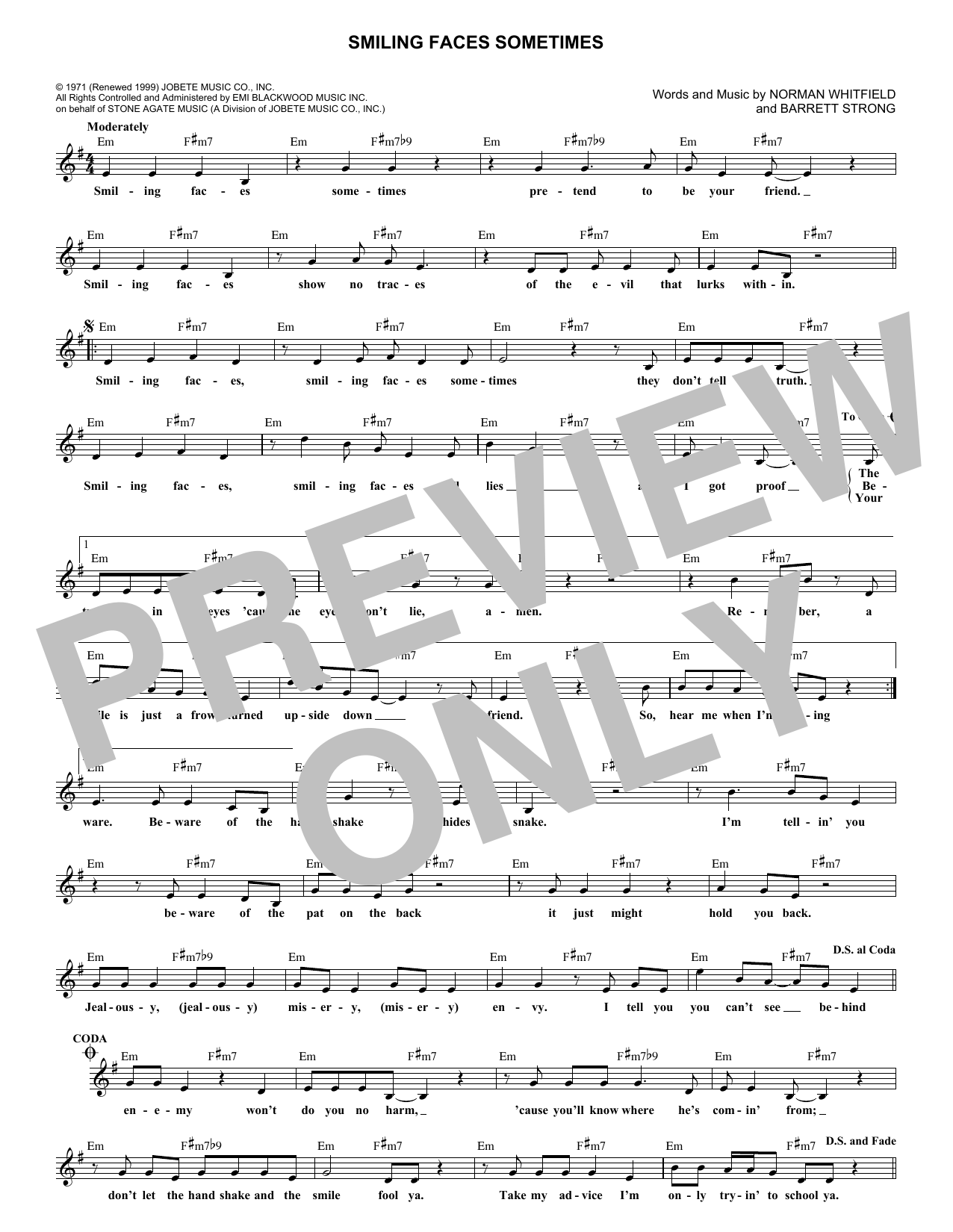 Download or print Rare Earth Smiling Faces Sometimes sheet music, chords and digital score arranged for Lead Sheet / Fake Book. This Pop score includes 1 page(s).