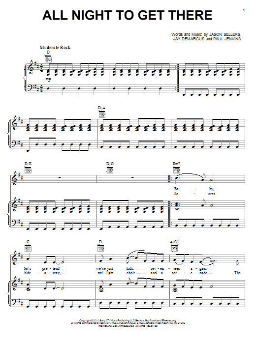 Download or print Rascal Flatts All Night To Get There sheet music, chords and digital score arranged for Piano, Vocal & Guitar Chords (Right-Hand Melody). This Pop score includes 6 page(s).