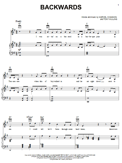 Download or print Rascal Flatts Backwards sheet music, chords and digital score arranged for Piano, Vocal & Guitar Chords (Right-Hand Melody). This Country score includes 11 page(s).