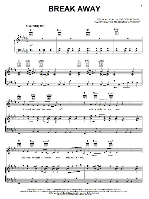 Download or print Rascal Flatts Break Away sheet music, chords and digital score arranged for Piano, Vocal & Guitar Chords (Right-Hand Melody). This Country score includes 5 page(s).