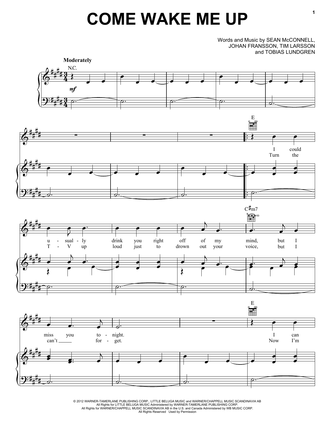 Quick facts Come Wake Me Up about digital sheet music