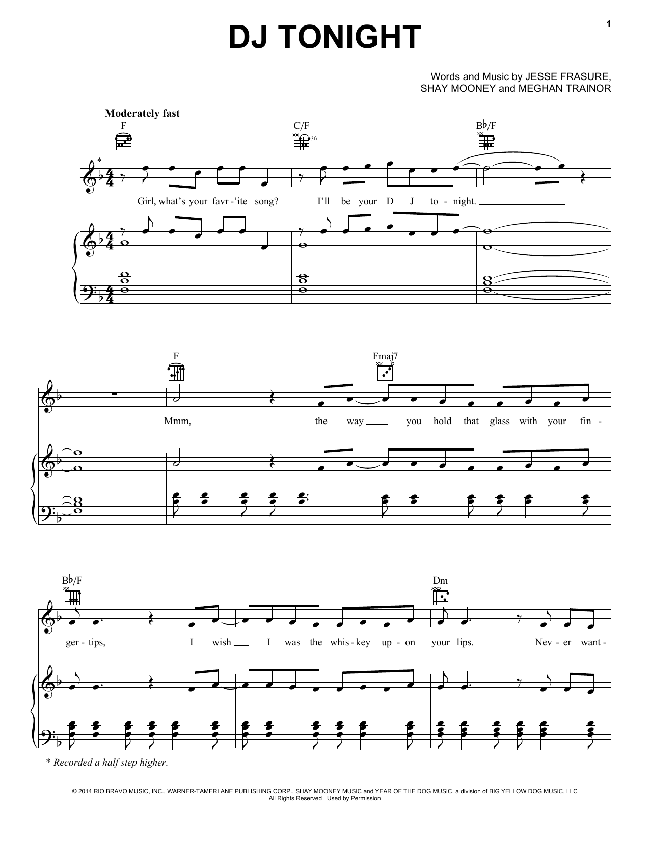 Download or print Rascal Flatts DJ Tonight sheet music, chords and digital score arranged for Piano, Vocal & Guitar Chords (Right-Hand Melody). This Country score includes 8 page(s).