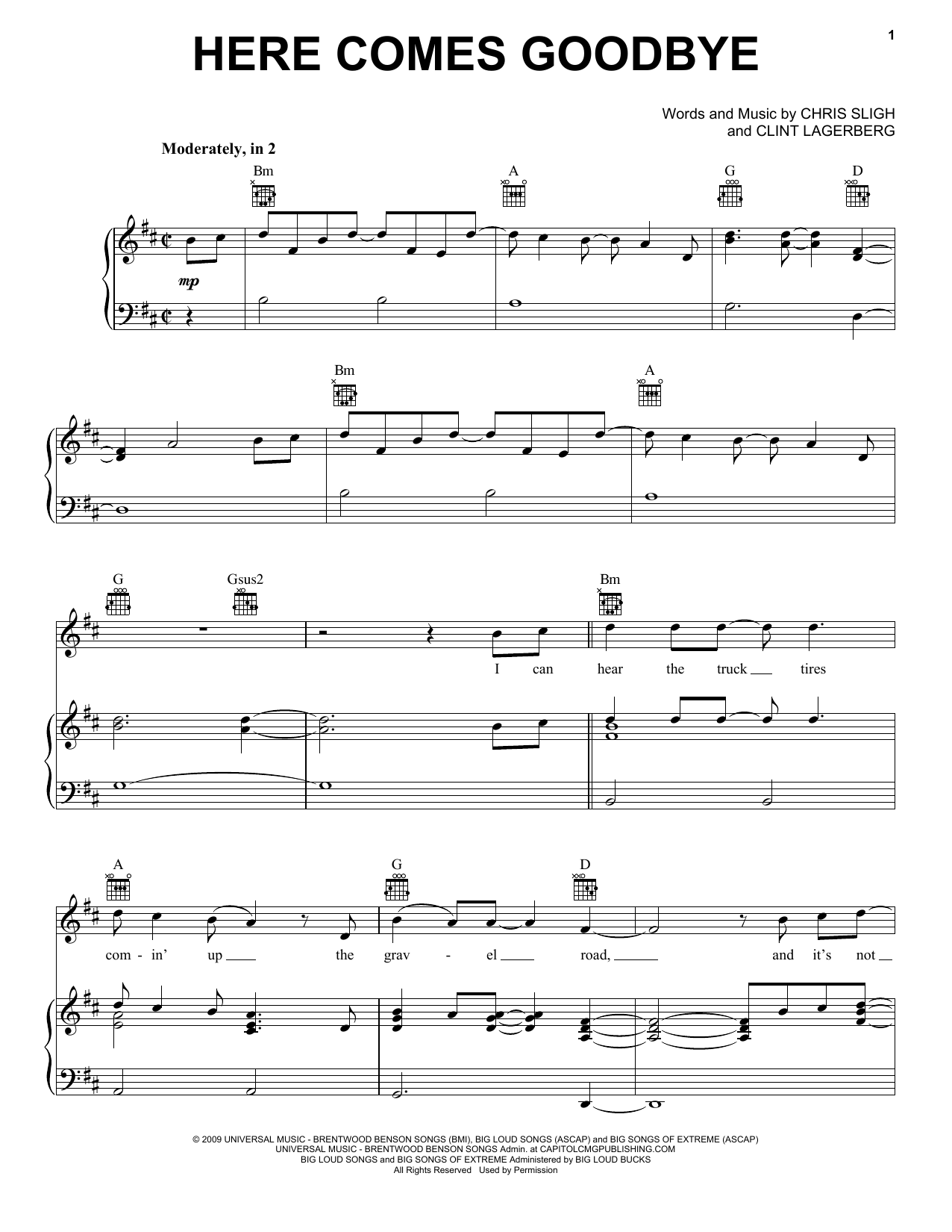 Download or print Rascal Flatts Here Comes Goodbye sheet music, chords and digital score arranged for Piano, Vocal & Guitar Chords (Right-Hand Melody). This Country score includes 11 page(s).