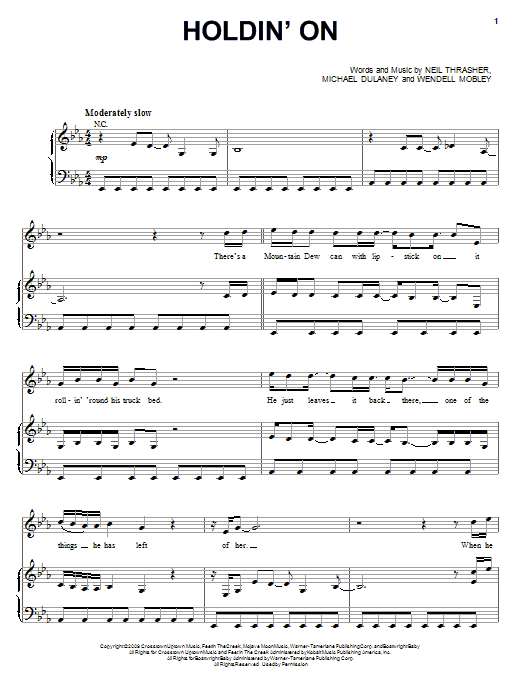 Download or print Rascal Flatts Holdin' On sheet music, chords and digital score arranged for Piano, Vocal & Guitar Chords (Right-Hand Melody). This Country score includes 7 page(s).