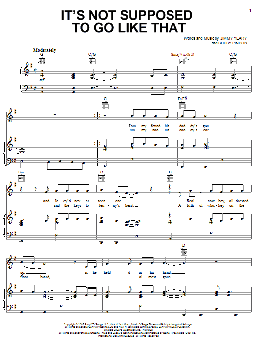 Download or print Rascal Flatts It's Not Supposed To Go Like That sheet music, chords and digital score arranged for Piano, Vocal & Guitar Chords (Right-Hand Melody). This Country score includes 7 page(s).