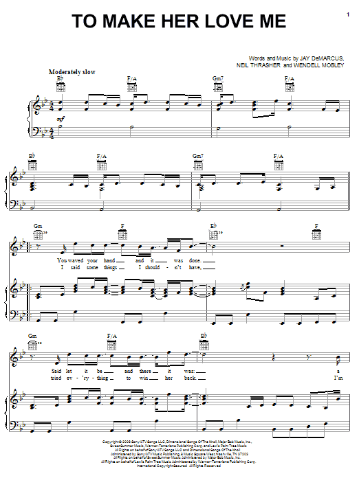 Download or print Rascal Flatts To Make Her Love Me sheet music, chords and digital score arranged for Piano, Vocal & Guitar Chords (Right-Hand Melody). This Country score includes 5 page(s).