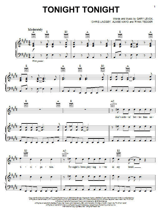 Download or print Rascal Flatts Tonight Tonight sheet music, chords and digital score arranged for Piano, Vocal & Guitar Chords (Right-Hand Melody). This Pop score includes 9 page(s).