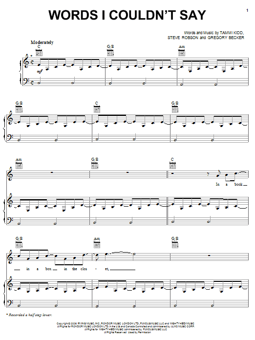 Quick facts Words I Couldn't Say about digital sheet music