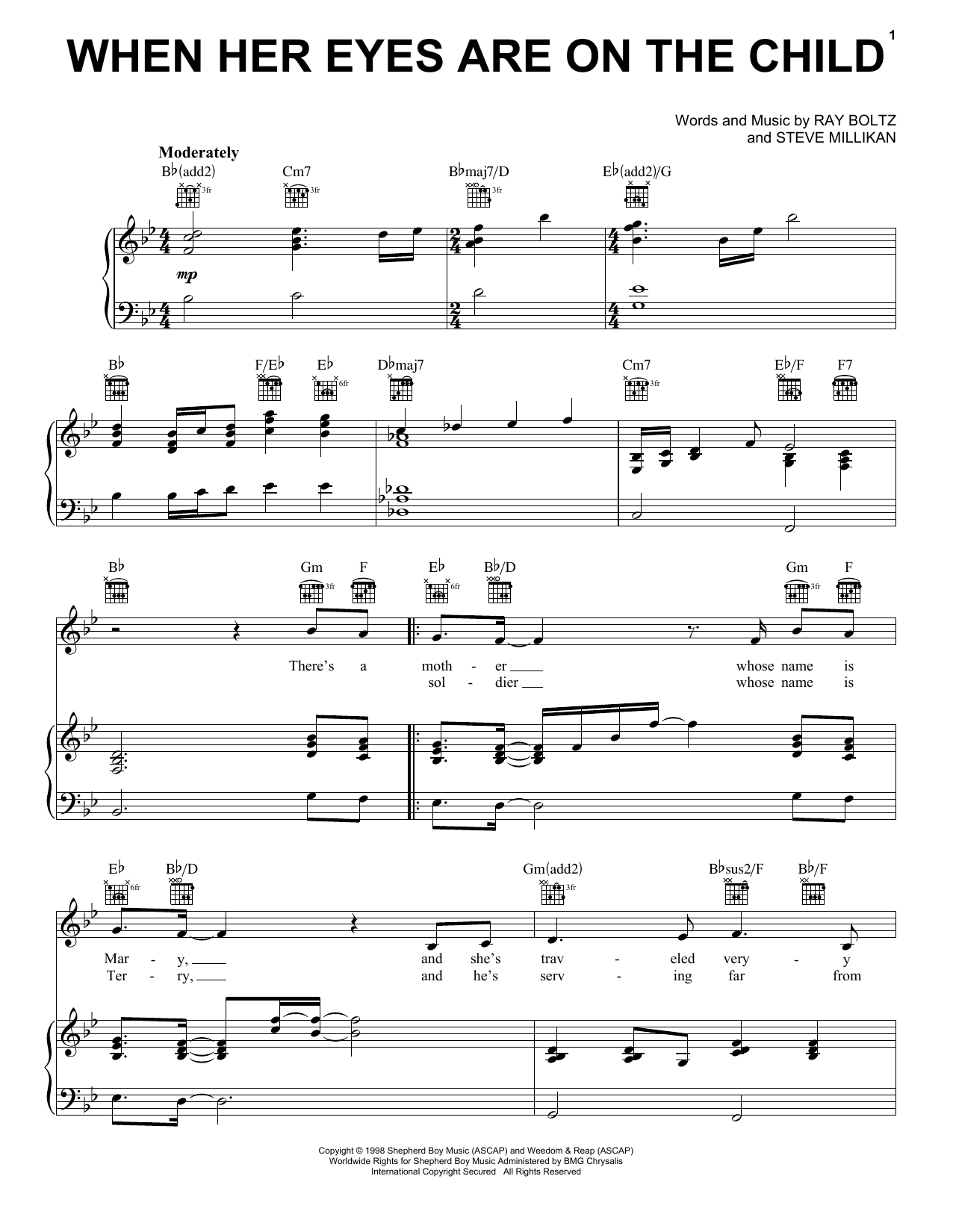 Download or print Ray Boltz When Her Eyes Are On The Child sheet music, chords and digital score arranged for Piano, Vocal & Guitar Chords (Right-Hand Melody). This Christmas score includes 6 page(s).