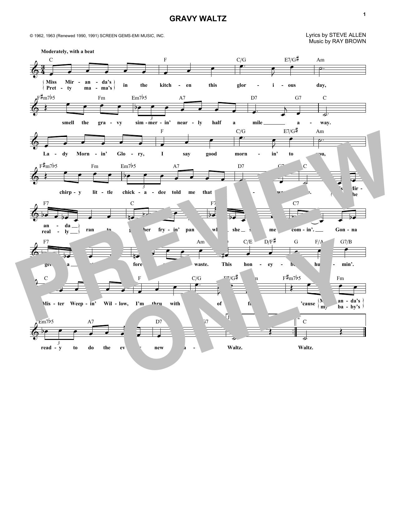 Download or print Ray Brown Gravy Waltz sheet music, chords and digital score arranged for String Bass Transcription. This Jazz score includes 6 page(s).