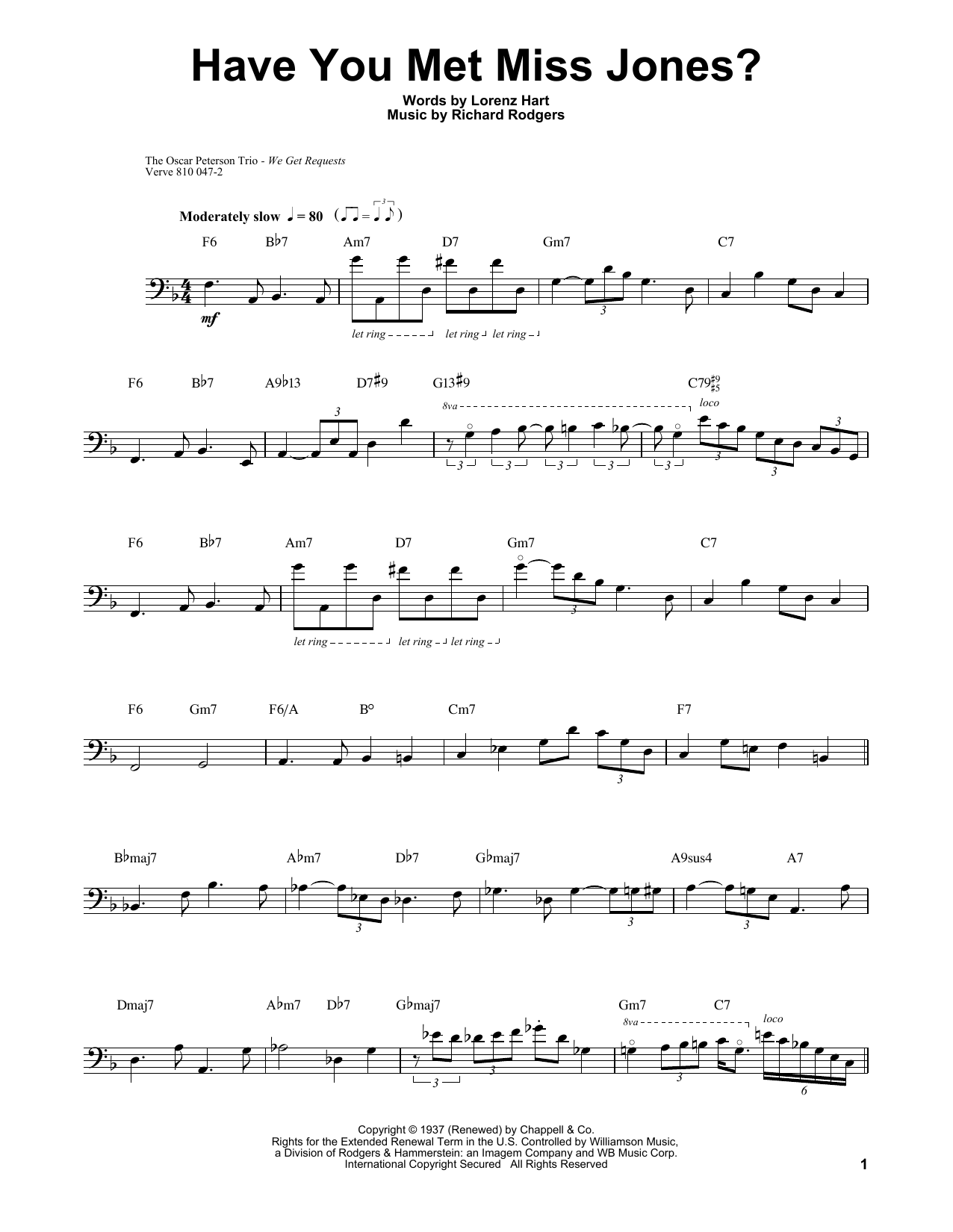 Download or print Ray Brown Have You Met Miss Jones? sheet music, chords and digital score arranged for String Bass Transcription. This Jazz score includes 3 page(s).